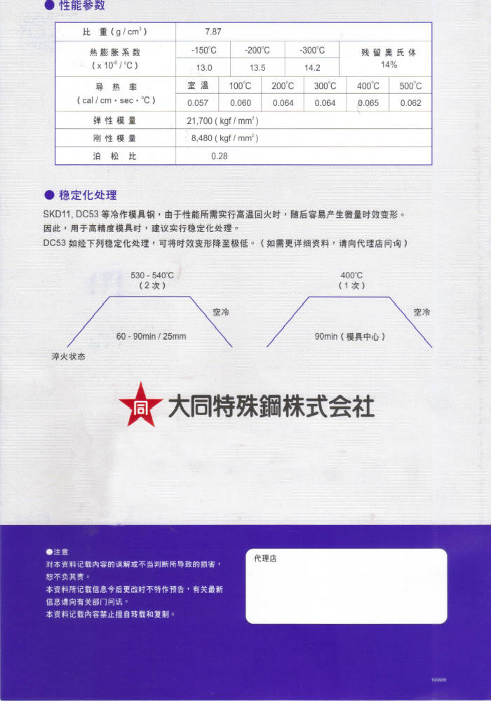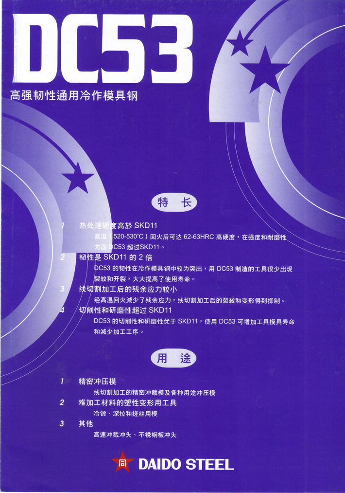 日本大同特殊钢DC53高韧性模具钢:8%Cr 高硬度*高韧性模具钢
