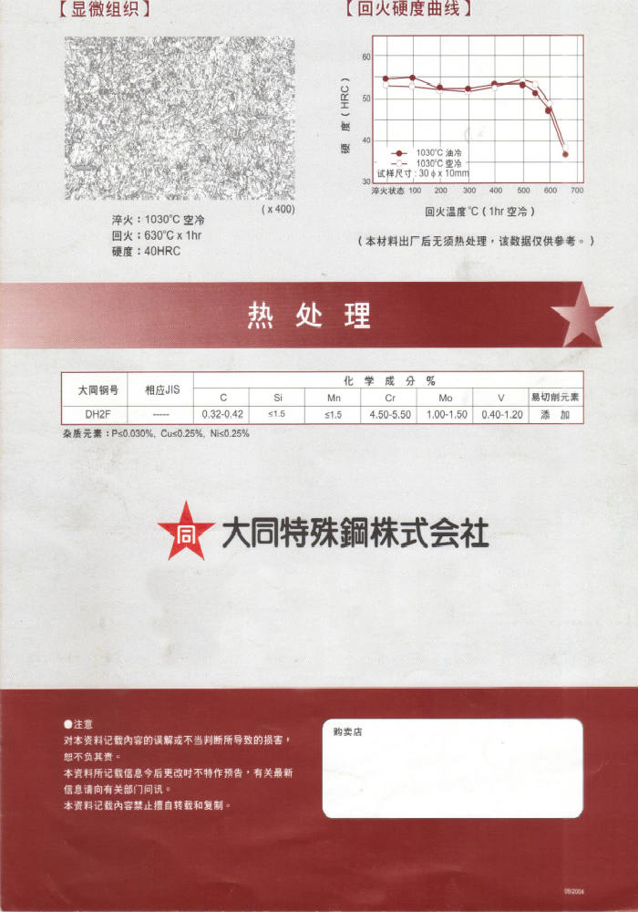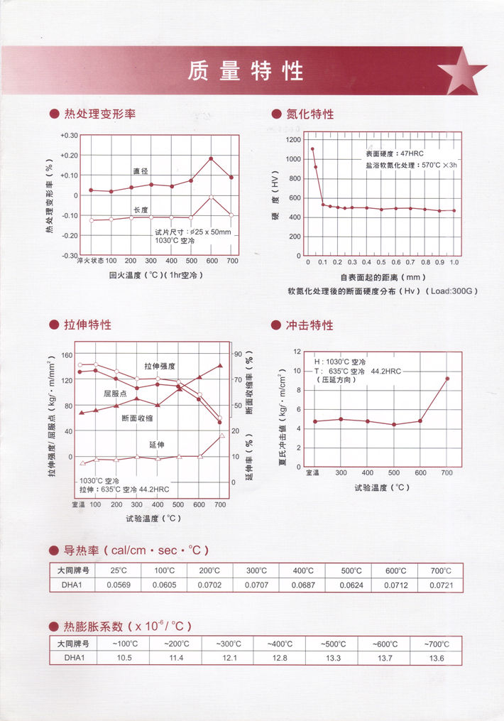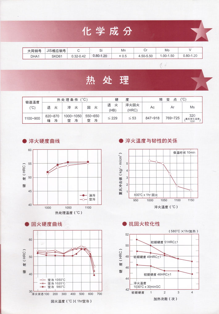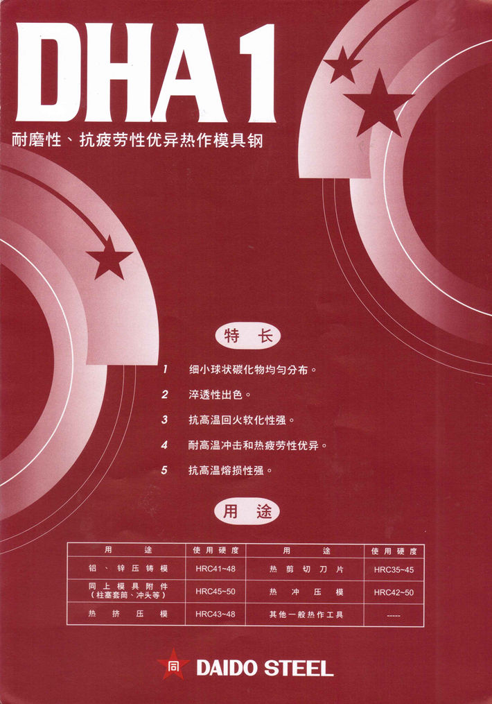 日本大同DHA1(SKD61)热作模具钢:通用热作模具钢